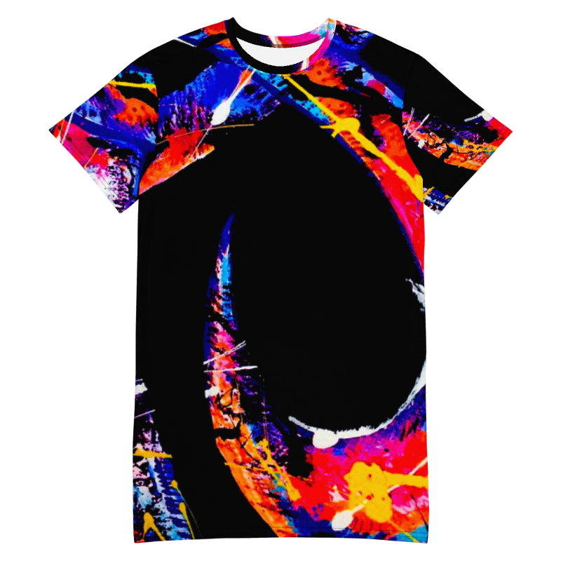 Steal the spotlight at any rave with the 'HOOK' T-Shirt Dress, a bold and versatile piece that captures the electric energy of the festival scene. Inspired by the deep shadows and brilliant highlights of abstract expressionism, this dress features a striking neon pattern with vibrant contrasts that glow under festival lights. Crafted from 96% polyester and 4% spandex, its smooth, stretchy fabric and relaxed, extralong fit make it perfect for dancing all night or chilling with friends. Precision-cut and hand-sewn, it’s a standout choice for festivals, beach days, or streetwear styling. Pair it with the 'HOOK' Fanny Pack for a cohesive rave look or layer with a jacket for urban flair.