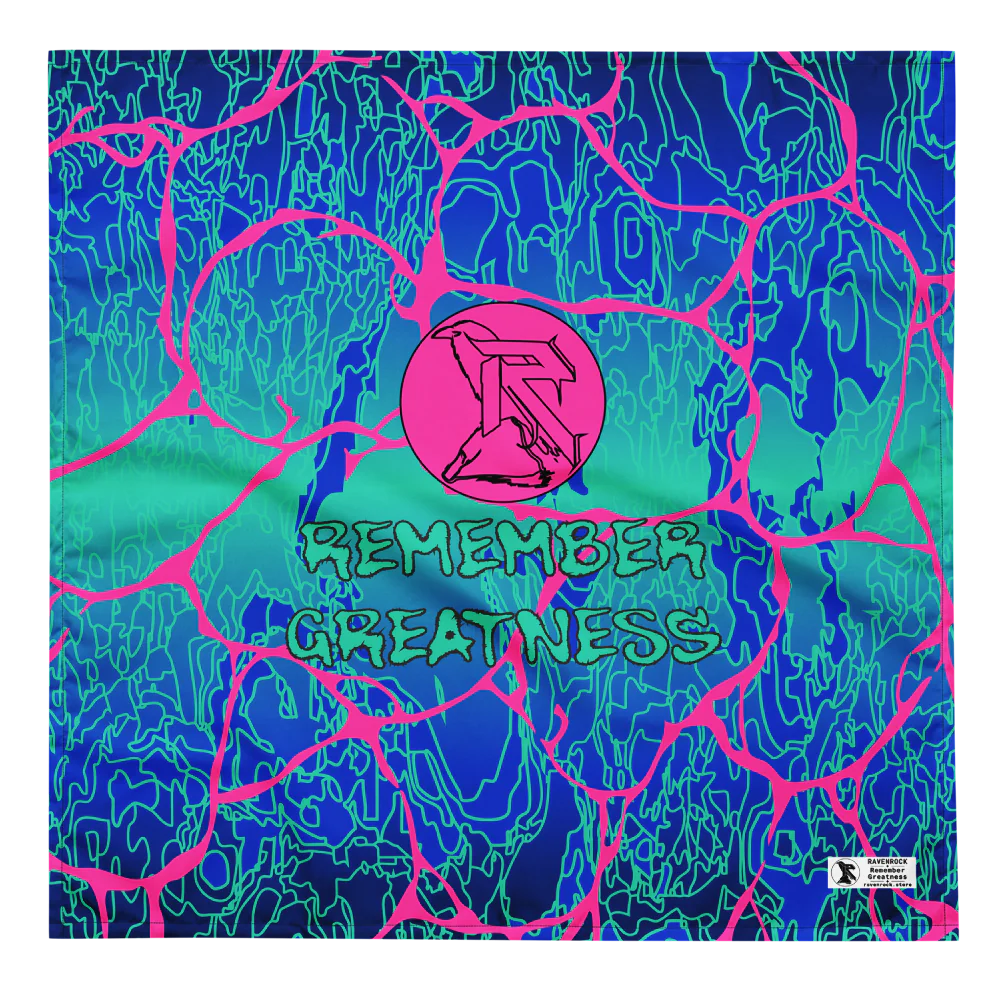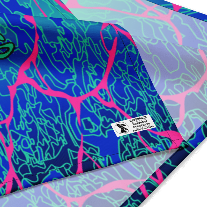 Make a bold statement with the 'LARIMAR' Bandana, the ultimate accessory for ravers who live to express their vibe. Inspired by the serene yet striking blue hues of the Larimar stone, this bandana features a vibrant neon blue and green all-over print that pops under festival lights. Crafted from 65% recycled polyester and 35% polyester, its breathable, moisture-wicking fabric keeps you cool and comfortable during raves, festivals, or streetwear adventures. Wear it as a headband, necktie, armband, or even style one for your pet to match your energy.