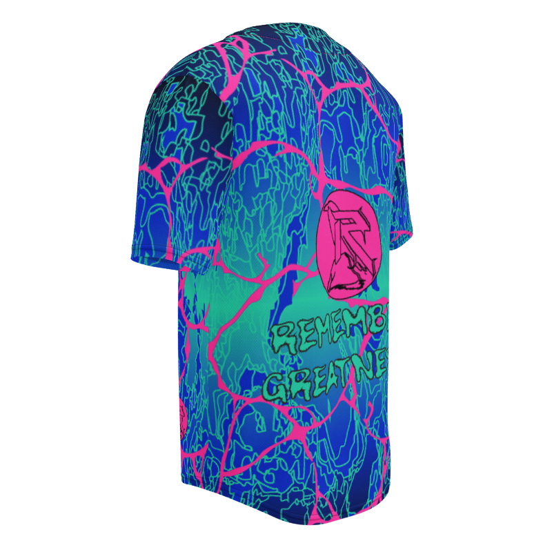 Hit the rave scene with the 'LARIMAR' Recycled Unisex Baseball Jersey, a bold fusion of sporty swagger and festival energy for ravers who shine bright. Inspired by the serene yet striking blue hues of the Larimar stone, this jersey features vibrant neon blue and green patterns that pop under festival lights. Crafted from 100% recycled polyester, its moisture-wicking fabric and UPF50+ protection keep you cool and protected during high-energy dance sessions or sun-soaked festival days. The regular fit, button closure, and drop tail design offer a classic baseball vibe perfect for raves or streetwear. Pair it with the 'LARIMAR' Track Pants for a unified look or rock it solo to turn heads.